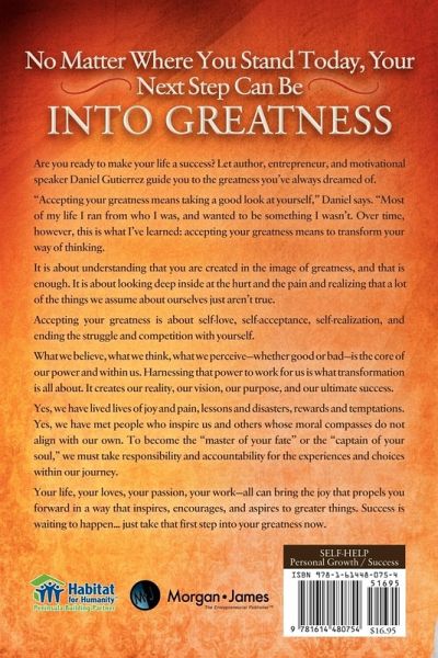 Through self-realization, acceptance and forgiveness, Daniel Gutierrez shows how to transform your way of thinking so that you can leave behind and learn from obstacles, self-doubts and destructive relationships in order to evolve into the successful person you were meant to be. Accepting your greatness means taking the first step toward personal transformation that will lead to a success beyond your wildest dreams.