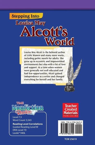 Take a carriage ride back to 1800s America and learn how Louisa May Alcott's home and family life influenced her writing. This nonfiction text breathes life into the pages of history, and gives students a sense of what life was like in Louisa May Alcott's time. Developed by Timothy Rasinski and featuring TIME content, this biography includes essential text features like an index, captions, glossary, and table of contents. The intriguing sidebars, fascinating images, and detailed Reader's Guide prompt students to connect back to the text and encourage multiple readings. The Think Link and Dig Deeper sections develop students' higher-order thinking skills. The Check It Out! section includes suggested books, videos, and websites for further reading. Aligned with state standards, this title features complex and rigorous content appropriate for students preparing for college and career readiness.