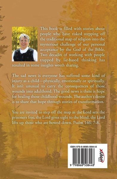 This book is filled with stories about people who have risked stepping off the traditional map of religion into the mysterious challenge of our personal acceptance by the God of the Bible. Two decades of working with people trapped by lie-based thinking has resulted in some insights worth sharing. The sad news is everyone has suffered some kind of injury as a child-physically, emotionally or spiritually. It isn't unusual to carry the consequences of those wounds into adulthood. The good news is there is hope for healing those childhood wounds. The author's desire is to share that hope through stories of transformation. You are invited to step off the map as the Lord sets the prisoners free, the Lord gives sight to the blind, the Lord lifts up those who are bowed down. Psalm 146: 7-8.