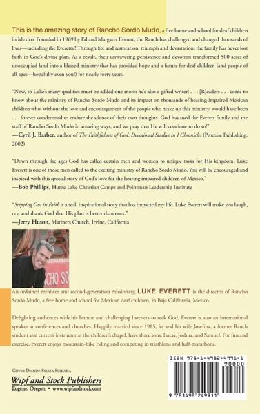 This is the amazing story of Rancho Sordo Mudo, a free home and school for deaf children in Mexico. Founded in 1969 by Ed and Margaret Everett, the Ranch has challenged and changed thousands of lives--including the Everetts'! Through fire and restoration, triumph and devastation, the family has never lost faith in God's divine plan. As a result, their unwavering persistence and devotion transformed 500 acres of unoccupied land into a blessed ministry that has provided hope and a future for deaf children (and people of all ages--hopefully even you!) for nearly forty years.