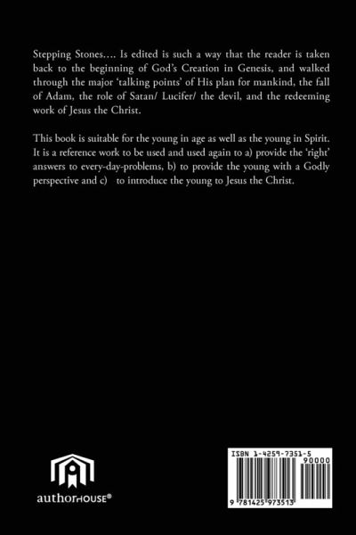 Stepping Stones.. Is edited is such a way that the reader is taken back to the beginning of God's Creation in Genesis, and walked through the major 'talking points' of His plan for mankind, the fall of Adam, the role of Satan/ Lucifer/ the devil, and the redeeming work of Jesus the Christ. This book is suitable for the young in age as well as the young in Spirit. It is a reference work to be used and used again to a) provide the 'right' answers to every-day-problems, b) to provide the young with a Godly perspective and c) to introduce the young to Jesus the Christ.