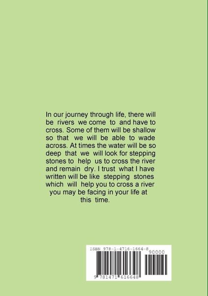 In our journey through life, there will be rivers to cross. Some of them will be shallow so that we will be able to wade across. Sometimes when the water is deeper, stepping stones will help to get us across and remain dry. I trust what I have written will be stepping stones to help you to cross a river you may be facing at this time.