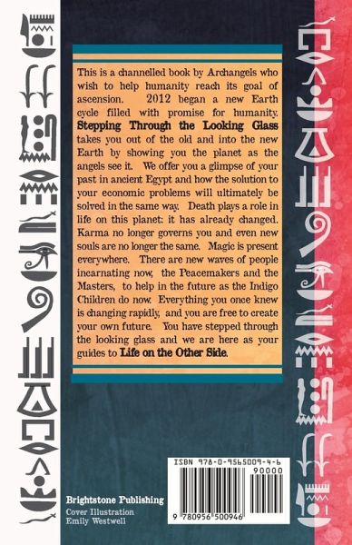 This is a channelled book by Archangels who wish to help humanity reach its goal of ascension. 2012 began a new Earth cycle filled with promise for humanity. Stepping Through the Looking Glass takes you out of the old and into the new Earth by showing you the planet as the angels see it. We offer you a glimpse of your past in ancient Egypt and how the solution to your economic problems will ultimately be solved in the same way. Death plays a role in life on this planet: it has already changed. Karma no longer governs you and even new souls are no longer the same. Magic is present everywhere. There are new waves of people incarnating now, the Peacemakers and the Masters, to help in the future as the Indigo Children do now. Everything you once knew is changing rapidly, and you are free to create your own future. You have stepped through the looking glass and we are here as your guides.
