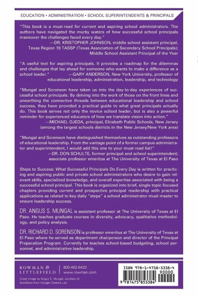 Steps to Success: What Successful Principals Do Every Day is purposefully written for practicing and aspiring public and private school administrators who desire - on a daily basis - to gain relevant skills, specialized knowledge, and overall expertise associated with being a successful school principal.