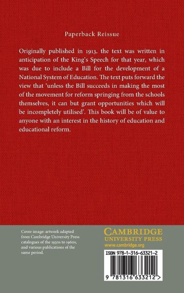 Originally published in 1913, this text was written in anticipation of the King's Speech for that year, which was due to include a Bill for the development of a National System of Education. The text puts forward the view that 'unless the Bill succeeds in making the most of the movement for reform springing from the schools themselves, it can but grant opportunities which will be incompletely utilised'. This book will be of value to anyone with an interest in the history of education and educational reform.