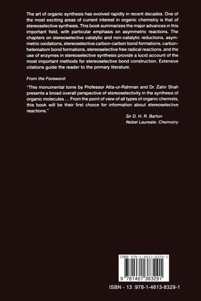 This monumental tome by Prof. Atta-ur-Rahman and Dr. Zahir Shah pres ents a broad overall perspective of stereo selectivity in the synthesis of or ganic molecules. Thus it treats a problem that is of fundamental importance and will be even more important in the future as the drug industry is required to supply 1000/0 optically pure compounds. After an exposition of general principles, the following subjects are treated: Catalytic Reductions, Heterogeneous Catalytic Hydrogenations, Stereoselective Non-Catalytic Reductions, Stereos elective Carbon-Carbon Bond Forming Reactions, Asymmetric Oxidations, Asymmetric Carbon Heteroatom Bond Formations, Enzyme Catalyzed Reactions, Stereo selective Free Radical Reactions, and finally Miscellaneous Stereoselective Reactions. For each subject, a wealth of examples are given. The highly selective reactions are mentioned along with reactions that are not. This is helpful as it will teach the practical chemist what to avoid. Much progress has been made in the last two decades in the design of new, very stereoselective reactions which can be applied in industry. For example, and in alphabetical order, we can mention (among other peers): H.C. Brown (hydroboration), D.C. Evans (carbon-carbon bond forma tion), R. Noyori (BINAP reagents for hydrogenation), and K.B. Sharpless (epoxidation and dihydroxylation of double bonds). Thus the field has completely changed since the 1950s, when optically pure compounds were always obtained by difficult resolutions of racemates and not by stereoselec tive reactions.