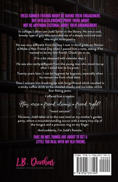 These former friends might be faking their engagement but revealed crushes prove there might not be anything fictional about their arrangement.In college, I often saw Judd Sylver in the library. He was a cool, broody type of guy who reminded me of a deeply tortured soul who might write poetry.He was very different from the boy I met in third grade on National Make a New Friend Day when I passed him a note, asking if he wanted to be my new friend: Check yes or no.(I'm a bit obsessed with calendar days.)He was also vastly different from the young man who stood me up after I asked him to his prom.Twenty years later, I can let bygones be bygones, especially when he rescues me from a bad date.Then I witness him breaking up with his girlfriend which resulted in a sticky coffee drink on his chiseled cheeks and ice cubes on his fine-fitting jeans.I offered him a napkin.Hey, once a friend, always a friend, right? *insert sarcasm*However, Judd takes us to the next level at my mother's garden party, where a misunderstanding occurs with a teeny tiny slip of the tongue and a precious ring on my finger.And suddenly, I'm Judd's fiancée. Fake or not, things are about to get a little too real with my old friend.