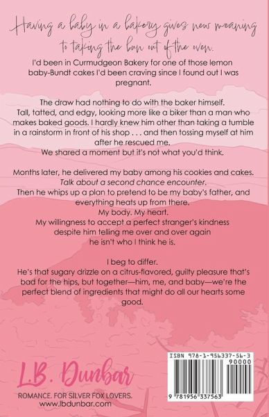 Having a baby in a bakery gives new meaning to taking the bun out of the oven. I'd been in Curmudgeon Bakery for one of those lemon baby-Bundt cakes I'd been craving since I found out I was pregnant. The draw had nothing to do with the baker himself. Tall, tatted, and edgy, looking more like a biker than a man who makes baked goods. I hardly knew him other than taking a tumble in a rainstorm in front of his shop . . . and then tossing myself at him after he rescued me. We shared a moment but it's not what you'd think. Months later, he delivered my baby among his cookies and cakes. Talk about a second chance encounter. Then he whips up a plan to pretend to be my baby's father, and everything heats up from there. My body. My heart. My willingness to accept a perfect stranger's kindness despite him telling me over and over he isn't who I think he is. I beg to differ. He's that sugary drizzle on a citrus-flavored, guilty pleasure that's bad for the hips, but together-him, and me, and baby-we're the perfect blend of ingredients that might do all our hearts some good.