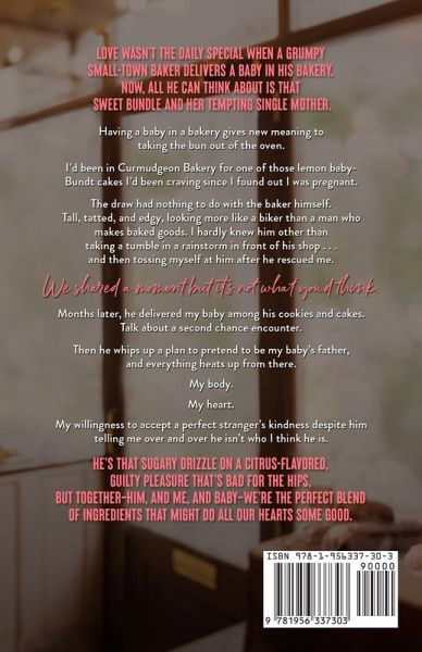 Having a baby in a bakery gives new meaning to taking the bun out of the oven. I'd been in Curmudgeon Bakery for one of those lemon baby-Bundt cakes I'd been craving since I found out I was pregnant. The draw had nothing to do with the baker himself. Tall, tatted, and edgy, looking more like a biker than a man who makes baked goods. I hardly knew him other than taking a tumble in a rainstorm in front of his shop . . . and then tossing myself at him after he rescued me. We shared a moment but it's not what you'd think. Months later, he delivered my baby among his cookies and cakes. Talk about a second chance encounter. Then he whips up a plan to pretend to be my baby's father, and everything heats up from there. My body. My heart. My willingness to accept a perfect stranger's kindness despite him telling me over and over he isn't who I think he is. I beg to differ. He's that sugary drizzle on a citrus-flavored, guilty pleasure that's bad for the hips, but together-him, and me, and baby-we're the perfect blend of ingredients that might do all our hearts some good.