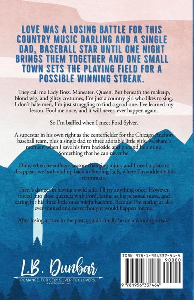 Love was a losing battle for this country music darling and a single dad, baseball star until one night brings them together and one small town sets the playing field for a possible winning streak. They call me Lady Boss. Maneater. Queen. But beneath the makeup, blond wig, and glitzy costumes, I'm just a country girl who likes to sing. I don't hate men, I'm just struggling to find a good one. I've learned my lesson. Fool me once, and it will never, ever happen again. So I'm baffled when I meet Ford Sylver. A superstar in his own right as the centerfielder for the Chicago Anchors baseball team, plus a single dad to three adorable little girls, we share a moment when I save his firm backside and pretend he's mine. Something that he can never be. Only, when he suffers a season-changing injury and I need a place to disappear, we both end up back in Sterling Falls, where I'm suddenly his roommate. There's danger in having a wild side. I'll try anything once. However, forced into close quarters with Ford, acting as his personal nurse, and caring for his three little ones might backfire. Because I'm staring at all I ever wanted and never thought would happen for me. After losing at love in the past, could I finally be on a winning streak?