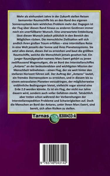 Dieses Buch ist Teil 1 einer aus insgesamt zehn Bänden bestehenden Reihe mit einer chronologisch fortlaufenden Geschichte.Mehr als einhundert Jahre in der Zukunft stellen Reisen bemannter Raumschiffe bis an den Rand des eigenen Sonnensystems kein wirkliches Problem mehr dar. Dagegen ist der Flug über diesen Rand hinaus zu anderen Gestirnen immer noch ein unerfüllbarer Wunsch. Eine unerwartete Entdeckung lässt diesen Wunsch jedoch plötzlich in den Bereich des Möglichen rücken. Die menschliche Zivilisation will sich endlich ihren großen Traum erfüllen und plant eine interstellare Reise in eine Welt jenseits der Sonne und ihres Planetensystems. Sie setzt alles daran, dieses Ziel zu erreichen und baut die größten Raumschiffe, welche die Menschheit jemals gesehen hat. Ein junger Raumjägerpilot namens Marc Ewert gehört zu jenen zwölftausend Wagemutigen, die an Bord des Interstellarschiffes "Antares" an der bedeutendsten und wichtigsten Mission der Menschheit teilnehmen, einen Flug, dersie weit hinter den stellaren Horizont führen soll. Der Auftrag der "Antares" lautet, ein fremdes Sternensystem zu erreichen und in diesem bis zu einem extrasolaren Planeten vorzudringen, der möglicherweise erdähnliche Bedingungen bietet, vielleicht sogar einmal eine zweite Erde werden könnte. Es ist ein Flug, der nicht nur Jahre dauern wird, sondern auch voller Gefahren steckt. Tatsächlich aber treten schon während der Vorbereitungen der Interstellarexpedition Probleme und Schwierigkeiten auf. Doch die Menschen an Bord der "Antares", unter ihnen Marc Ewert, sind bereit, sich allen Risiken zu stellen.