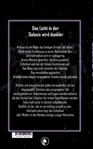 Arthian ist ein Ritter des heiligen Ordens der Asteri. Nach seiner Ernennung zu einem Beschützer des Sternenreiches wird er schlagartig in eine Mission geworfen, die sein gesamtes Schicksal und das der Galaxis bestimmen soll. Das Böse regt sich zwischen den Sternen. Das verschollen geglaubte Artefakt eines längst vergessenen Feindes wurde gefunden.Arthian und seine Freunde sollen herausfinden, ob der totgeglaubte Schatten aus vergangener Zeit zurückgekehrt ist. Geheimnisse und Lügen werden entlarvt, die den Verlauf der Zeitalter für immer beeinflussen werden. Denn nicht jeder in diesem aufglühenden Konflikt ist der, der er am Anfang vorgab zu sein. Und bald schon liegt das Schicksal aller Welten in den Händen weniger junger Menschen.