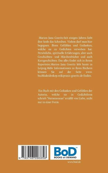 Ein Buch mit den Gedanken und Gefühlen der Autorin, welche sie in Gedichtform schrieb. "Sternenozean" erzählt von Liebe, nicht nur in einer Form.
