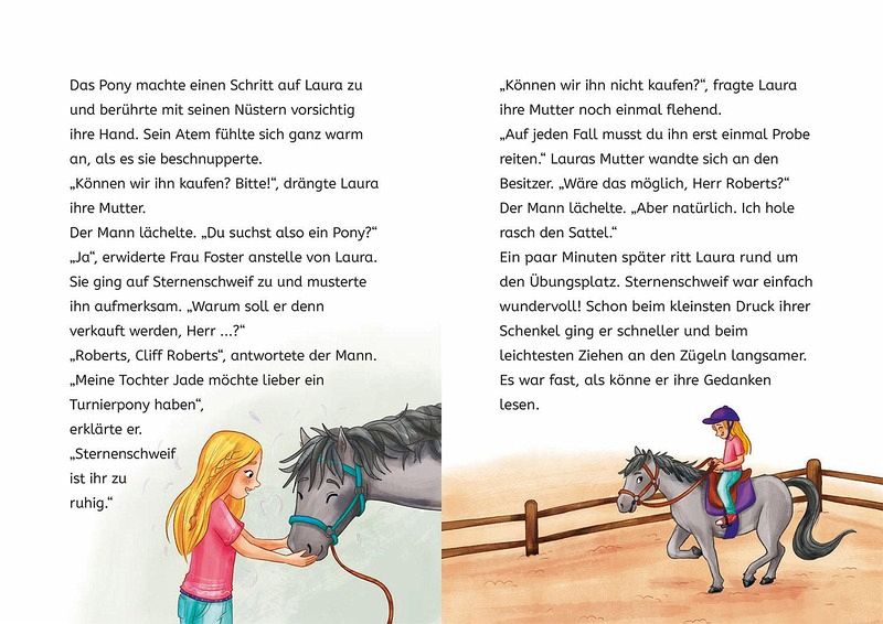 Sicher lesen können - für Kinder ab 7 Jahren.Beliebtes Thema Einhorn.Magische Geschichten, die die Fantasie anregen.Leicht lesbar durch Erstleseschrift und einfache Sätze.Motiviert Leseanfänger.Stärkt die Lesekompetenz.Laura hat ein wunderbares Geheimnis: Ihr Pony Sternenschweif ist in Wirklichkeit ein Einhorn! Zusammen erleben die beiden Freunde viele magische Abenteuer.Wie begann eigentlich die Freundschaft zwischen Laura und Sternenschweif? Wie haben sich die beiden wirklich kennengelernt? Laura ist vor Kurzem mit ihren Eltern aufs Land gezogen. Sie hat noch keine Freunde und fühlt sich oft einsam. Doch dafür geht ihr sehnlichster Wunsch in Erfüllung: Laura bekommt ein Pony geschenkt! Auf einer Auktion sieht sie ein zotteliges und strubbeliges kleines Pony. Sternenschweif! Sie weiß sofort, dass sie zusammengehören. In einem magischen Buch erfährt Laura, dass Sternenschweif nicht einfach nur ein Pony ist. Er ist ein verzaubertes Einhorn! Der Beginn einer magischen Freundschaft.Die Erfolgsreihe Sternenschweif: die perfekte Kombination aus Pferdegeschichte und Einhornabenteuer.