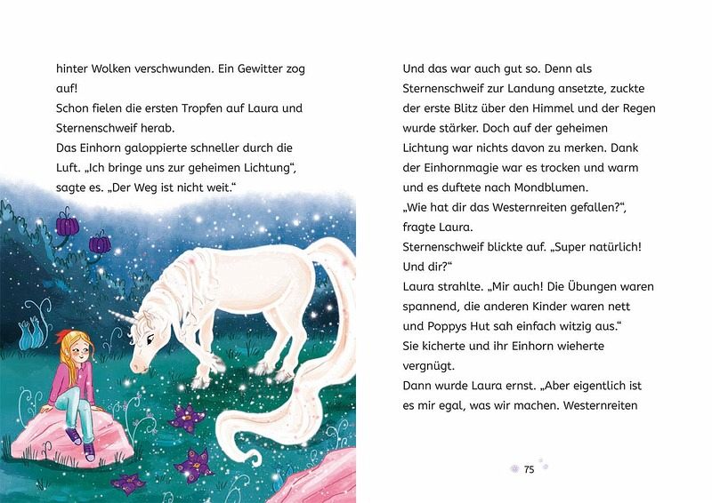 Sicher lesen können - für Kinder ab 7 Jahren.Beliebtes Thema Einhorn.Magische Geschichten, die die Fantasie anregen.Leicht lesbar durch Erstleseschrift und einfache Sätze.Motiviert Leseanfänger.Stärkt die Lesekompetenz.Laura hat ein wunderbares Geheimnis: Ihr Pony Sternenschweif ist in Wirklichkeit ein Einhorn! Zusammen erleben die beiden Freunde viele magische Abenteuer.Poppy schafft es! Bei einem Westernreiten-Ferienkurs lernen Laura und Einhorn Sternenschweif das Mini-Shetlandpony Poppy kennen. Es ist ganz traurig, weil es von niemandem ernst genommen wird. Keiner traut dem Pony etwas zu! Alle halten es für viel zu klein. Laura und Sternenschweif haben eine tolle Idee. Sie überlegen sich eine ganz besondere Aufgabe, die nur Poppy erfüllen kann! Was haben die beiden vor? Geht ihr Plan wirklich auf? Eine zauberhafte Einhorn-Freundschaftsgeschichte zum Mitmachen. 80 Seiten in kurzen Kapiteln, leicht verständlicher Sprache und mit vielen vierfarbigen Illustrationen.Die Erfolgsreihe Sternenschweif: die perfekte Kombination aus Pferdegeschichte und Einhornabenteuer.