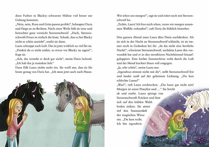 Laura und ihr Pony Sternenschweif erleben zusammen viele magische Abenteuer - doch hinter Sternenschweifs funkelnden Hufen verbirgt sich ein noch größeres Geheimnis: Er ist ein Einhorn! In diesem bezaubernden Vorlesebuch begleiten die jungen Leser die beiden Freunde auf einer Reise voller Mut und Entdeckungen. Sie erfahren, wie Laura und Sternenschweif gemeinsam ihre Ängste überwinden - und das nicht nur mit Magie. Die liebevoll erzählte und wunderschön illustrierte Geschichte zeigt, wie wichtig es ist, sich seinen eigenen Herausforderungen zu stellen und dabei Vertrauen in die eigenen Fähigkeiten zu gewinnen. Kleine Leserinnen und Leser lernen, dass sie nicht alleine sind und dass Mut auch ohne Zauberkräfte entstehen kann.Die Erfolgsreihe Sternenschweif: die perfekte Kombination aus Pferdegeschichte und Einhornabenteuer.