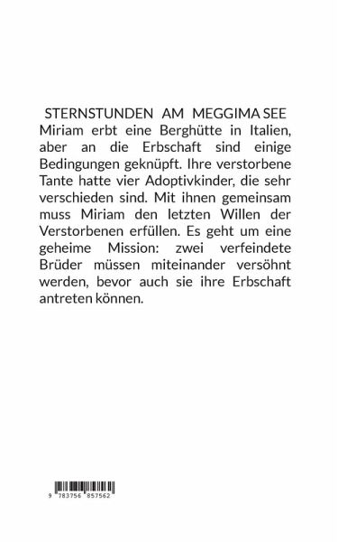 Miriam erbt eine Berghütte in Italien, aber an die Erbschaft sind einige Bedingungen geknüpft. Ihre verstorbene Tante hatte vier Adoptivkinder, die sehr verschieden sind. Mit ihnen gemeinsam muss Miriam den letzten Willen der Verstorbenen erfüllen. Es geht um eine geheime Mission: zwei verfeindete Brüder müssen miteinander versöhnt werden, bevor auch sie ihre Erbschaft antreten können.
