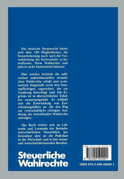 Die Betriebswirtschaftliche Steuerlehre ist eine noch junge Teildisziplin der Betriebs wirtschaftslehre. Die Palette ihrer Fragestellungen und Erkenntnisse weist deshalb noch immer groBe Lucken auf. So hat das Fach erst vor wenigen Jahren dam it begon nen, sich mit den zahlreichen auBerbiianzielien steuerlichen Wahlrechten, den soge nannten Rechtswahlmoglichkeiten, zu beschaftigen; mehr als einen groben AufriB konnte es aber bisher noch nicht prasentieren. Die hier vorgelegte, von der Wirtschafts- und Sozialwissenschaftlichen Fakultat der Universitat zu Koln angenommene Dissertation von Rolf Michels stellt, soweit ich sehe, den ersten gelungenen Versuch einer umfassenden Analyse der RechtswahlmOglich keiten dar; sie ist zugleich mit einer Zuordnung der einzelnen Wahlrechte zu den Ent-. scheidungstragern und mit der Entwicklung von Entscheidungshilfen verbunden. In dieser Volistandigkeit und Perfektion stellt sie einen bemerkenswerten Forschungsfort schritt, in ihrem geschickten Aufbau eine echte Hilfe fur die Praxis dar. Die Arbeit macht namlich das - gerade fur kleinere und mittlere Steuerpflichtige so sehr wichtige - Gebiet mit seinen darin liegenden Moglichkeiten fur die sorgfaltig arbeitende Steuerbera tungspraxis nutzbar. Die von einem Steuerpflichtigen jeweils ausubbaren Rechtswahl moglichkeiten sind jetzt zu uberblicken; man erfahrt auBerdem die zutreffende Art und Weise der anzustellenden Vorteilhaftigkeitsuberlegungen. Das groBe wissenschaftlich-organisatorische Talent des Verfassers, zugleich mit 142 unterschiedlichen Steuerrechtssubjekttypen, 126 RechtswahlmOglichkeiten und 18 Kalkulformen umzugehen, verdient hohe Anerkennung. Ich bin deshalb sehr glucklich, dieses Buch als Band 12 meiner Schriftenreihe der Offentlichkeit zuganglich machen zu konnen.