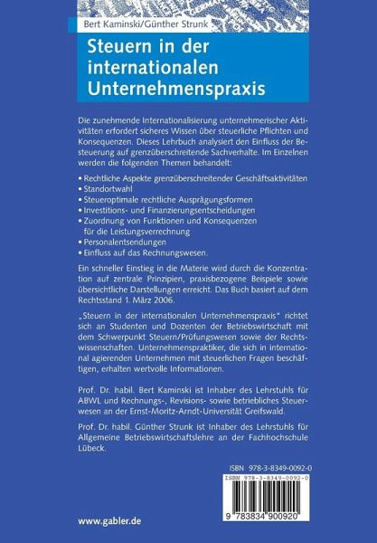 "Steuern in der internationalen Unternehmenspraxis" richtet sich an Studenten und Dozenten der Betriebswirtschaft mit dem Schwerpunkt Steuern/Prüfungswesen sowie der Rechtswissenschaften.