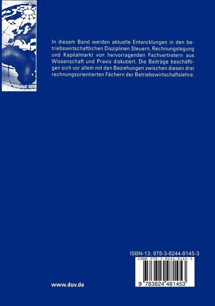 In diesem Band werden aktuelle Entwicklungen in den betriebswirtschaftlichen Disziplinen Steuern, Rechnungslegung und Kapitalmarkt von hervorragenden Fachvertretern aus Wissenschaft und Praxis diskutiert. Die Beiträge beschäftigen sich vor allem mit den Beziehungen zwischen diesen drei rechnungsorientierten Fächern der Betriebswirtschaftslehre.