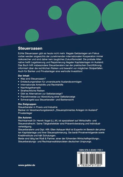 Echte Steueroasen sind passé. Illegale Geldanlagen am Fiskus vorbei werden angesichts der zunehmenden internationalen Kooperation immer risikoreicher und sind daher kein taugliches Zukunftsmodell. Die probate Alternative heißt Legalisierung und Repatriierung illegaler Kapitalanlagen im Ausland. Das Buch hilft insbesondere Steuerberatern bei der praktischen Durchführung, informiert über die rechtlichen Risiken und bewahrt vor möglichen Stolperfallen. Auch für Banker und Privatanleger eine wertvolle Investition!