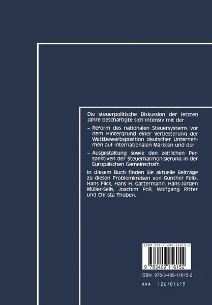 Die steuerpolitische Diskussion der letzten Jahre betraf vornehmlich zwei Pro blemfelder: zum ersten die Reform des nationalen Steuersystems zur Verbesse rung der Wettbewerbsposition deutscher Unternehmen auf den internationalen Märkten und vor Vollendung des europäischen Binnenmarktes und zum zweiten Ausgestaltung und zeitliche Perspektiven der Steuerharmonisierung in der Euro päischen Gemeinschaft. DieserThematik widmete sich die Vortrags-und Diskus sionsreihe "Frankfurter betriebswirtschaftliches Forum" im Frühjahr 1990 unter dem Generalthema "Steuerreform und Steuerharmonisierung". Zusätzlichen Reiz und eine ganz unerwartete Aktualität gewann die Veranstaltungsfolge durch die steuer-und finanzpolitischen Probleme des Zusammenwachsens der beiden deutschen Staaten. Die Referenten - Günther Felix, Hans Flick, Hans H. Gatter mann, Hans-Jürgen Müller-Seils, Joachim Poß, Wolfgang Ritter, Christa Thoben - bewiesen ihre Souveränität in der diffizilen Materie nicht zuletzt durch ihre Fähigkeit, ihre steuerpolitischen Positionen mit den Erfordernissen der neuen Entwicklung abzustimmen. Die Fortführung der Veranstaltungsreihe wurde möglich durch finanzielle Zuwen dungen der Wilhelm Merton-Stiftung. Hierfür danken wir ebenso wie für die gute Zusammenarbeit mit dem Betriebswirtschaftlichen Verlag Dr. Th. Gabler GmbH. WINFRIED MELLWIG ADOLFMoXTER DIETER ORDELHEIDE 5 Inhaltsverzeichnis Steuerharmonisierung und europäischer Binnenmarkt Von Prof Wolfgang Ritter Direktor der BASF AG und Vorsitzender des Steuerausschusses des Bundesverbandes der Deutschen Industrie I. Europa und die Steuern 11 11. Was bislang erreicht wurde 13 111. Die steuerlichen Vorgaben der Einheitlichen Europäischen Akte 15 IV. Abschaffung der Steuerkontrollen beim Grenzübergang 17 1. Mehrwertsteuer . . . . . . . . 18 2. Verbrauchsteuern . . . . . . . 20 3. Aussichten der Verwirklichung 21 V. Harmonisierung der direkten Steuern 24 VI.