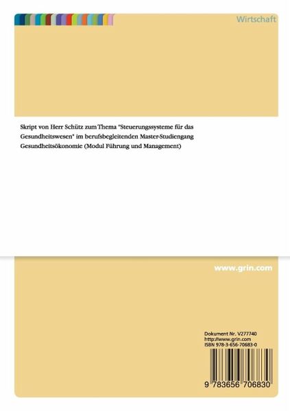 Vorlesungsmitschrift aus dem Jahr 2014 im Fachbereich VWL - Gesundheitsökonomie, Note: wurde nicht benotet, Hochschule Fresenius; Köln (Gesundheitsökonomie), Veranstaltung: Führung und Management inkl. Personalmanagement, Sprache: Deutsch, Abstract: Skript von Herr Schütz zum Thema "Steuerungssysteme für das Gesundheitswesen" im berufsbegleitenden Master-Studiengang Gesundheitsökonomie (Modul Führung und Management)