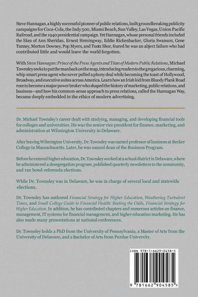 Steve Hannagan was a highly-successful pioneer of public relations who built ground-breaking publicity campaigns for the Indianapolis 500, Miami Beach, Sun Valley, Las Vegas, the 1940 Presidential Campaign, and Coca Cola. He developed, tested, and refined many of the press and publicity principles commonly used today. Along the way, Steve Hannagan knew or worked with most major figures and celebrities of his era. His colleagues and friends spanned business, Hollywood, Broadway, New York's Café Society, the news media, politics, and sports. Hannagan was a garrulous, charming, whip-smart press…mehr