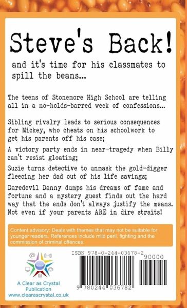 **Sequel to Steve's Web Operation: Stay Safe Online** Steve's Back! And it's time for his classmates to spill the beans... The teens of Stonemore High are telling all in a no-holds-barred week of confessions. Sibling rivalry leads to serious consequences for Mickey, who cheats on his schoolwork to get his parents off his case; A victory party ends in near-tragedy when Billy can't resist gloating; Suzie turns detective to unmask the gold-digger fleecing her dad out of his life savings; Daredevil Danny dumps his dreams of fame and fortune and a mystery guest finds out the hard way that the ends don't always justify the means. Not even if your parents ARE in dire straits! **Content Advisory** Deals with themes that may not be suitable for younger readers. References include mild peril, fighting and the commission of criminal acts.