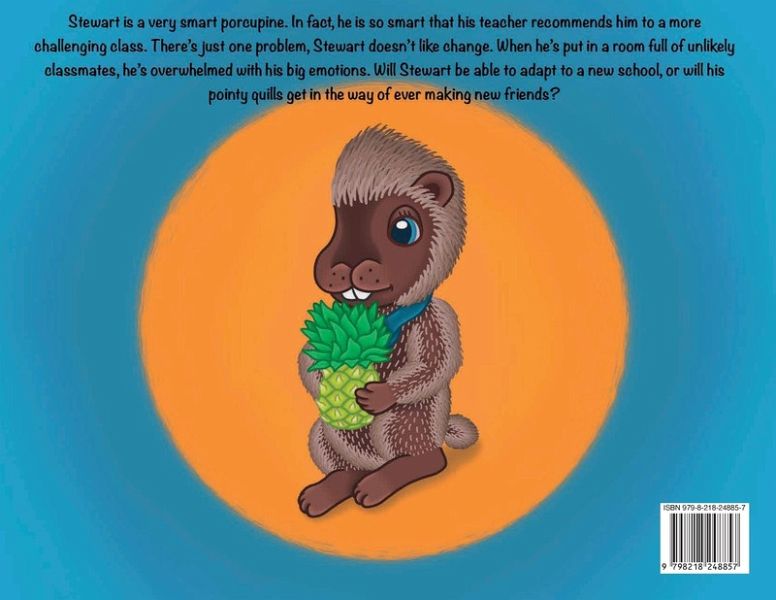 Stewart H. Quills and His Explosive Emotions is a rhyming story about a very smart porcupine named Stewart. In fact, he is so smart that his teacher, Mrs. Owl, recommends him to a more challenging class. There's just one problem, Stewart does not like change. When he's put in a room full of unlikely classmates, he's overwhelmed with his big emotions. Will Stewart be able to adapt to a new school, or will his pointy quills get in the way of ever making new friends?