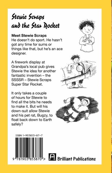 Stewie doesn't do sport. He hasn't got any time for sums or things like that, but he does like designing and making things. Come and join Stewie Scraps and his pet rat Bugzy in their extraordinary adventures as Stewie cleverly uses and adapts bit and pieces found in his dad's junk shop to make the ... Star Rocket. On Friday 5th November, Grandpa's local pub is holding a fireworks party for charity. "You could come with me." Grandpa suggests. Stewie thinks about it. In Art and Craft, Stewie has to think up his own firework and produces his Star Rocket design. Back at home it takes a couple of hours to find all the bits neded for his Super Star Rocket. Stewie drags the rocket out of the shed and gets ready for the launch. Join Stewie's adventure as he and Bugs hurtle off upwards into the night sky. Stewie's adventures have been specially written to motivate reluctant readers, especially boys. The gripping, stand-alone storylines stimulate their imaginations and they want to read about Stewie's other adventures.