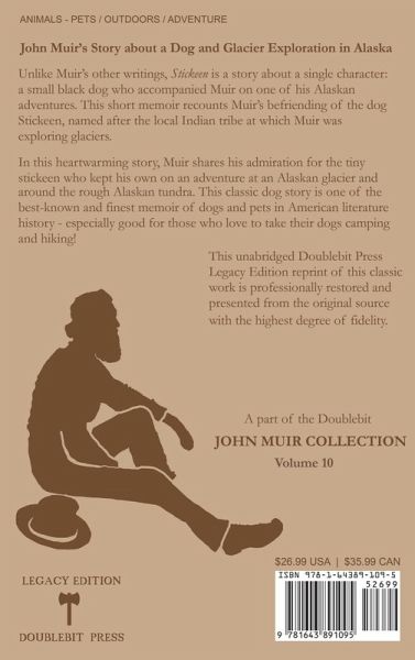 John Muir’s Story about a Dog and Glacier Exploration in Alaska This deluxe, unabridged reprint Legacy Edition of John Muir’s 1909 book-form version of Stickeen (first published in magazine form in 1897) recounts John Muir’s befriending of a dog during his Alaskan adventures with mountains, glaciers, and the frozen tundra of the far northwest. In this heartwarming story, Muir shares his admiration for a tiny dog who braves the expedition as strong as any of the humans on the trek! Through his illustrative prose, Muir shares how an animal friend can make all the difference in the wilderness. This classic dog story is one of the best-known and finest memoir of dogs and pets in American literature history, especially for those who love to take their dogs camping and hiking! During his time in Alaska, Muir met a little black dog at one of his camps. Thinking the dog a shaggy toy of a creature, Muir was uncertain about letting him join the trek. Learning that the dog had received the name "Stickeen" after the local Indian tribe, Muir realized that his affection for the dog grew as the days went by. Much different than his other travel writings, see another side of Muir as he describes his pup friend and how the dog fared during his wilderness trip from Fort Wrangel to study the stretches of the great Alaskan glaciers. This book makes a perfect gift for adventurers at heart, including enthusiasts of exploration backpacking, camping, and nature lore who want to reflect on the history of the American and Canadian Far Northwest. Also great for dog and pet lovers, and outdoorsers who love to take dogs camping and hiking! A part of the Doublebit John Muir Collection: Volume 10 This Doublebit Legacy Edition reprint of Stickeen is professionally restored and presented from the original source with the highest degree of fidelity possible, including inspiration from the original first-edition cover. Available in both paperback and hardcover, readers can enjoy this Legacy Edition for generations and learn from its timeless knowledge for years to come. About the Doublebit Press Library of Legacy Edition Reprints Sometimes we need to remember our history to move forward. Sometimes, remembering our heritage is just fun or inspirational. With technology playing a major role in everyday life, sometimes we need to take a step back in time to find those basic building blocks used for gaining mastery – the things that we have luckily not completely lost and has been recorded in books over the last two centuries. These skills aren’t forgotten, they’ve just been shelved. It’s time to unshelve them once again and reclaim the lost knowledge of self-sufficiency! As a part of the Doublebit John Muir Collection, this unabridged Legacy Edition volume is reprinted in the exact form as it was presented in the original publication. Both important and minor details have equally both been accounted for by our publishing staff, down to the cover, font, layout, and images. It is the goal of Doublebit Legacy Edition series to preserve outdoors heritage, but also be cherished as collectible pieces, worthy of collection in any outdoorsperson’s library and that can be passed to future generations.