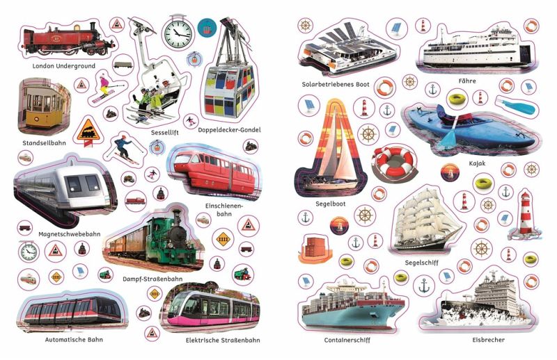 - Über 600 wiederablösbare Sticker: von Fahrrad und Lastwagen über Segelschiff und U-Boot bis Mars-Hubschrauber und Überschallflugzeug