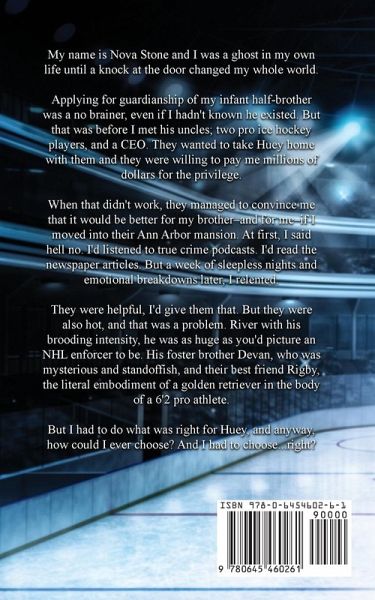 My name is Nova Stone and I was a ghost in my own life until a knock at the door changed my whole world. Applying for guardianship of my infant half-brother was a no brainer, even if I hadn't known he existed. But that was before I met his uncles; two pro ice hockey players, and a CEO. They wanted to take Huey home with them and they were willing to pay me millions of dollars for the privilege. When that didn't work, they managed to convince me that it would be better for my brother-and for me-if I moved into their Ann Arbor mansion. At first, I said hell no. I'd listened to true crime podcasts. I'd read the newspaper articles. But a week of sleepless nights and emotional breakdowns later, I relented. They were helpful, I'd give them that. But they were also hot, and that was a problem. River with his brooding intensity, he was as huge as you'd picture an NHL enforcer to be. His foster brother Devan, who was mysterious and standoffish, and their best friend Rigby, the literal embodiment of a golden retriever in the body of a 6'2 pro athlete. But I had to do what was right for Huey, and anyway, how could I ever choose? And I had to choose...right?