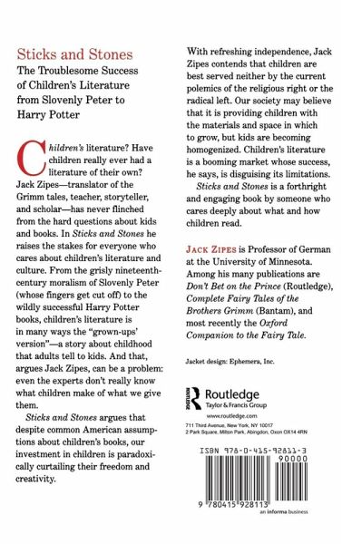 Have children ever really had a literature of their own? In Sticks and Stones Jack Zipes, translator of the Grimm tales, teacher, storyteller and scholar, explores children's literature, from the grisly moralism of Slovenly Peter to the hugely successful Harry Potter books, and argues that despite common assumptions about children's books, our current investment in children is paradoxically curtailing their freedom and creativity. Sticks and Stones is a forthright and engaging book by someone who cares deeply about what and how children read.