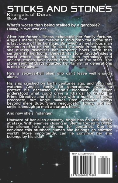 Gargoyles are not what you think... Sten's ship crashed on Earth centuries ago, and since then, he's been hiding in plain sight, awaiting rescue. But a thousand years is a long time to go without companionship, even for a long-lived alien, and the human female he's guarded since childhood has grown into an alluring woman. When a mysterious man offers to buy the "statue" in Angie's garden, Sten knows he's been discovered. The Rose Syndicate has hunted his kind for centuries, capturing and torturing his fellow Khargals in the name of science. But simply fleeing isn't an option; Angie has a secret. One he's sworn to protect. Forced to reveal himself, Sten is confronted with a new truth. Impossible as it seems, Angie is his mate. And the urge to claim her may be his undoing. STICKS AND STONES is a standalone story in the collaborative Khargals of Duras series, with no cliffhangers and a guaranteed HEA. Enjoy the books in any order!