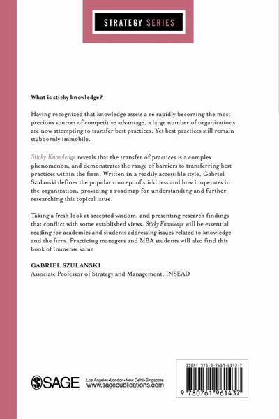 Sticky Knowledge reveals that the transfer of practices is a complex phenomenon, and demonstrates the range of barriers to transferring best practices within the firm. Written in a brief and accessible format, Gabriel Szulanski defines the popular concept of stickiness and its operationalization, providing a roadmap for understanding and further researching this topical issue.