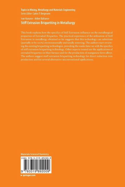 This book explains how the specifics of Stiff Extrusion influence on the metallurgical properties of Extruded Briquettes. The practical experience of the utilization of Stiff Extrusion in metallurgy obtained so far suggests that this technology can substitute (partially or by 100%) environmentally unfriendly sintering. The authors start reviewing the existing briquetting technologies, providing the reader later on with the specifics of stiff extrusion briquetting technology. Other aspects treated are the applications of extruded briquettes on blast furnace and for the production of manganese ferro alloys. The authors suggest stuff extrusion briquetting technology for direct reduction iron production and list several alternative unconventional applications.