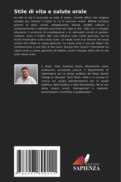 Lo stile di vita è associato ai modi di vivere, concetti diffusi che vengono utilizzati per indicare il modo in cui le persone vivono. Riflette un'intera gamma di valori sociali, atteggiamenti, attività, modelli culturali e comportamentali e abitudini personali per tutta la vita. Tutto ciò si sviluppa attraverso il processo di socializzazione e le interazioni sociali di genitori, coetanei, amici e fratelli. Non solo influisce sulla salute generale, ma ha anche implicazioni sulla salute orale. La salute orale è la finestra del corpo umano che riflette la salute generale. La salute orale è uno dei fattori che contribuiscono a uno stile di vita sano. Questo libro illustra l'interazione tra salute orale e salute generale ed elabora anche l'impatto dello stile di vita sulla salute orale.