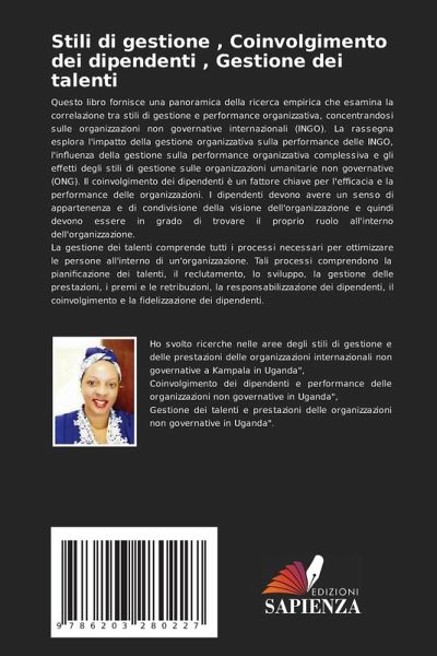 Questo libro fornisce una panoramica della ricerca empirica che esamina la correlazione tra stili di gestione e performance organizzativa, concentrandosi sulle organizzazioni non governative internazionali (INGO). La rassegna esplora l'impatto della gestione organizzativa sulla performance delle INGO, l'influenza della gestione sulla performance organizzativa complessiva e gli effetti degli stili di gestione sulle organizzazioni umanitarie non governative (ONG). Il coinvolgimento dei dipendenti è un fattore chiave per l'efficacia e la performance delle organizzazioni. I dipendenti devono avere un senso di appartenenza e di condivisione della visione dell'organizzazione e quindi devono essere in grado di trovare il proprio ruolo all'interno dell'organizzazione.La gestione dei talenti comprende tutti i processi necessari per ottimizzare le persone all'interno di un'organizzazione. Tali processi comprendono la pianificazione dei talenti, il reclutamento, lo sviluppo, la gestione delle prestazioni, i premi e le retribuzioni, la responsabilizzazione dei dipendenti, il coinvolgimento e la fidelizzazione dei dipendenti.