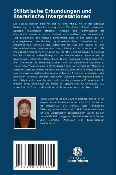 Die Stilistik befasst sich mit der Art und Weise, wie in der Literatur Bedeutung durch Sprache erzeugt wird. Zu diesem Zweck verwenden Stilisten linguistische Modelle, Theorien und Rahmenwerke als Analyseinstrumente, um zu beschreiben und zu erklären, wie und warum ein Text funktioniert. Die Analyse konzentriert sich in der Regel auf die phonologischen, lexikalischen, grammatikalischen, semantischen und pragmatischen Merkmale von Texten, um die Rolle der Stilistik bei der wissenschaftlichen Interpretation von Literatur zu untersuchen. Als linguistische Herangehensweise an die Literatur stellt die Studie den Beitrag des Formalismus in den Mittelpunkt, der die literarische Sprache als die Summe aller stilistischen Mittel (Klang, Bilder, Rhythmus, Syntax) betrachtet, die miteinander in Beziehung stehen, um die gewöhnliche Sprache zu "deformieren" und ihr eine "entfremdende" oder "verfremdende" Wirkung zu verleihen. Darüber hinaus versucht die Studie, eine primäre Unterscheidung zwischen zwei grundlegenden Komponenten der Erzählung aufzuzeigen: der narrativen Handlung und dem narrativen Diskurs.Die vorliegende Studie ist der "Schnittstelle von Sprach- und Literaturwissenschaft" gewidmet. In diesem Sinne beleuchtet die Studie ein spezifisches Fachvokabular, das sowohl für die Sprach- als auch für die Literaturwissenschaft typisch ist.