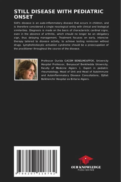 Still's disease is an auto-inflammatory disease that occurs in children, and is therefore considered a single nosological entity with clinical and biological similarities. Diagnosis is made on the basis of characteristic cardinal signs, even in the absence of arthritis, which should no longer be an obligatory sign, thus delaying management. Treatment focuses on early, intensive therapy tailored to disease activity, to achieve lasting remission without drugs. Lymphohistiocytic activation syndrome should be a preoccupation of the practitioner throughout the course of the disease.