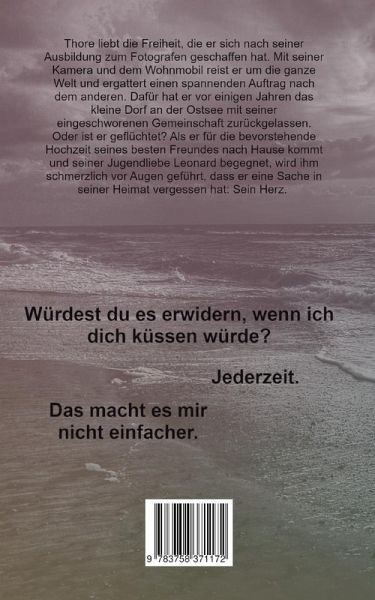 Thore liebt die Freiheit, die er sich nach seiner Ausbildung zum Fotografen geschaffen hat. Mit seiner Kamera und dem Wohnmobil reist er um die ganze Welt und ergattert einen spannenden Auftrag nach dem anderen. Dafür hat er vor einigen Jahren das kleine Dorf an der Ostsee mit seiner eingeschworenen Gemeinschaft zurückgelassen. Oder ist er geflüchtet? Als er für die bevorstehende Hochzeit seines besten Freundes nach Hause kommt und seiner Jugendliebe Leonard begegnet, wird ihm schmerzlich vor Augen geführt, dass er eine Sache in seiner Heimat vergessen hat: Sein Herz.