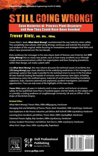 "Trevor Kletz has helped to educate many people in industry to the hazards that they are confronted with on a regular basis, especially those in the chemical, oil and process industries. Still Going Wrong is his eleventh book, and most people can learn something from it, whether they are involved in production, maintenance or design.He has some very good advice for incident investigators, looking for the true cause of an accident and not just who to blame.Still Going Wrong? is very aptly titled. All process industries have a tremendous amount to learn. The pressure for improving safety standards is relentless, as it should be. This book will help build awareness of the diverse causes of accidents. It will not prevent them unless the reader is committed to thinking about the lessons and applying them appropriately in their own area of responsibility. If lessons in this book prevent one incident in each reader's plant, the cost of the human suffering incurred in the book will not have been wasted.Without a doubt I recommend this book for anyone involved with management, design, operation, health and safety, or maintenance, in the process industries." --Nick Spencer GM and Director, ConocoPhillips Ltd Humber Refinery"Safety management may not be rocket science but it does require detailed attention and constant review and enhancement....Trevor has subtitled this book "Case studies of Process Disasters and how they could have been avoided". Maybe it could have been...Here's to the Next One.We should also recognize that we have all been involved in 'near misses' which could have escalated and been one of the examples in Trevor's book. It is essential that we do learn from these incidents and others like them. "Still Going Wrong" is another wake up call, easy to read and to follow and at times you will be left with the feeling "Why!?" --Frank Crawlev, From Industrial Safety Management, Vol 6, No 2, April 2004, p 29."Still Going Wrong is an immensely readable book and one that I would recommend to all personnel with an interest in safety." --Health and Safety At Work August 2004"This book is an excellent compilation of case histories of process plant accidents and discussions of how they could have been avoided. I feel that this book will be of great use to people who work in the chemical process industries and are involved in process design, production, and maintenance. As with the author's other books, this one is very easy to read. It imparts much useful and practical information, which could lead to avoidance or minimization of costly accidents, both with respect to property and human life loss. It will make a very useful addition to the technical library of process safety/loss prevention engineers." --Journal of Loss Prevention in the Process Industries, July 2004"One can classify technical books into two categories: There are reference books that you turn to only when the need arises; then, there are books you read simply because they are interesting, readable and relevant. Trevor Kletz's latest book, "Still Going Wrong happily falls into this latter category.Mr. Kletz provides the insight that can help you delve into these issues, and provides materials that help you learn from others' mistakes.In his acknowledgements, Mr. Kletz notes that he is 82, and that this is likely to be his last book. Fortunately for us, he has captured his knowledge and experience in a format that will certainly be of benefit to the next generation of process-industry workers. --Chemical Engineering, Nov. 2005