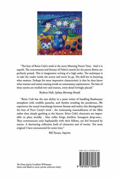 "The best of Brien Cole's work is the story Morning Parrot Trees. And it is superb. The concreteness and fantasy of Fisher's search for the parrot flower are perfectly poised. This is imaginative writing of a high order. The technique is to take the reader inside the action and never let go. His skill lies in knowing what matters. Perhaps his most impressive characteristic is that he does know what matters and resists wasting words on unnecessary explanations. The best of these stories are mulled over and mature, every detail lovingly placed." - Rodney Hall, Sydney Morning Herald "Brien Cole has the rare ability in a prose writer of handling flamboyant metaphors with credible panache, and rhythm avoiding the ponderous... We experience the casual interchange between fantasy and reality that distinguishes the best of Peter Carey's work - the insinuating reasonableness of the fable rather than simply gawking at the bizarre. Brien Cole's characters are impossible to place socially - blue collar fringe dwellers, bourgeois drop-outs... They communicate only haphazardly with their fellows, yet feel betrayed by nature. A fascinating collection both of characters and of stories. The most original I have encountered for some time." - Bill Turner, Imprint