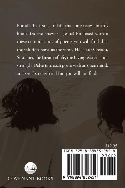 For all the issues of life that one faces, in this book lies the answer--Jesus! Enclosed within these compilations of poems you will find that the solution remains the same. He is our Creator, Sustainer, the Breath of life, the Living Water--our strength! Delve into each poem with an open mind, and see if strength in Him you will not find!