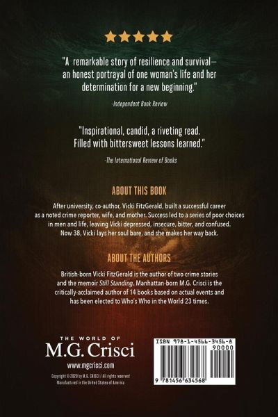 Raw Emotion. Life or Death. Truthfully Delivered. Vicki was 28 when her neat world crumbled. Her moral compass—beloved Gramps—died suddenly, leaving Vicki depressed and insecure. Despite a series of poor choices in men and life, by 24, Vicki had built a career as a noted crime reporter, wife, and mother. But success led to disaster. Vicki’s perfect world crumbled with bitter family upheaval, leading to multiple suicide attempts. Now 38, Vicki lays her soul bare and shares the pivotal moments of her roller-coaster life: depression, grief, heartache, trauma, drugging, and suicide, truthfully, and candidly. Her story is heartbreaking, inspiring, and unexpectedly witty. Most of all, "Still Standing" is a remarkable story of resilience and survival --an honest portrayal of one woman’s life and her determination for a new beginning.