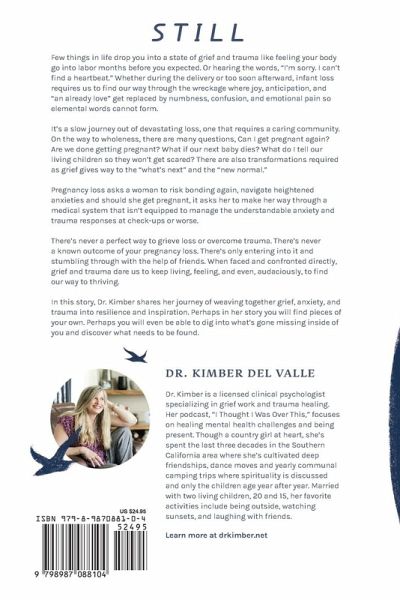 Gentle healing and finding stability for yourself and your family after stillbirth grief.Few things in life drop you into a state of grief and trauma like feeling your body go into labor months before you expected, then hearing the words, "I'm sorry. I can't find a heartbeat." Whether during the delivery or too soon afterward, infant loss requires us to find our way through the wreckage where joy, anticipation, and "an already love" get replaced by numbness, confusion, and emotional pain so immense words cannot form.It's a slow journey out of devastating loss, one that requires a caring community. On the way to wholeness, there are many questions: Can I get pregnant again? Are we done getting pregnant? What if our next baby dies? What do I tell our living children so they won't get scared? There are also transformations required as grief gives way to the "what's next" and the "new normal."In Still: Making A Whole When Parts Go Missing, Dr. Kimber integrates her vast knowledge of psychology with her own painful loss of a 34-week stillbirth, making her uniquely qualified to address the complexities of pregnancy loss. She weaves together grief, anxiety, and trauma into resilience and inspiration, recounting the effects of losing her baby on her marriage, her sunshine child, and the need for her courage, strength, and a loving community to heal. This is her story of trying to make all of that "whole" again. Perhaps you will find pieces of your own on these pages. Perhaps you will even be able to dig into what's gone missing inside of you and discover what needs to be found.There's never a perfect way to grieve loss or overcome trauma. There's never a known outcome of your pregnancy loss. There's only entering into it and stumbling through with the help of family and friends. When faced and confronted directly, grief and trauma dare us to keep living, feeling, and even, audaciously, to find our way to thriving. Let Dr. Kimber's story hold the hope that what's been broken can be repaired-not into what it was before but into something that you wouldn't have imagined. Into something that has yet to be lived or have formed. When it emerges, you'll know. It's waiting to be found. Something that doesn't yet have shape. As you pick up the pieces, it will find you.