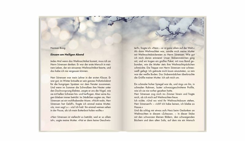 Die einzelnen Seiten sind wunderschön gestaltet. Weihnachtliche Motive und Bilder unterstützen die einzelnen Gedichte und Geschichten.