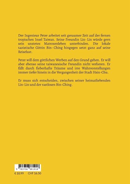 Der Ingenieur Peter arbeitet seit geraumer Zeit auf der fernen tropischen Insel Taiwan. Seine Freundin Lin-Lin würde gern sein unstetes Matrosenleben unterbinden. Die lokale taoistische Göttin Bin-Ching hingegen setzt ganz auf seine Reiselust.Peter will dem göttlichen Werben auf den Grund gehen. Er will aber ebenso seine taiwanesische Freundin nicht verlieren. Er fällt durch fieberhafte Träume und irre Wahnvorstellungen immer tiefer hinein in die Vergangenheit der Stadt Hsin-Chu. Er muss sich entscheiden, zwischen seiner heimatliebenden Lin-Lin und der rastlosen Bin-Ching.